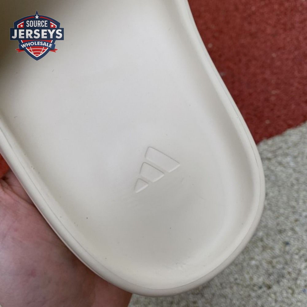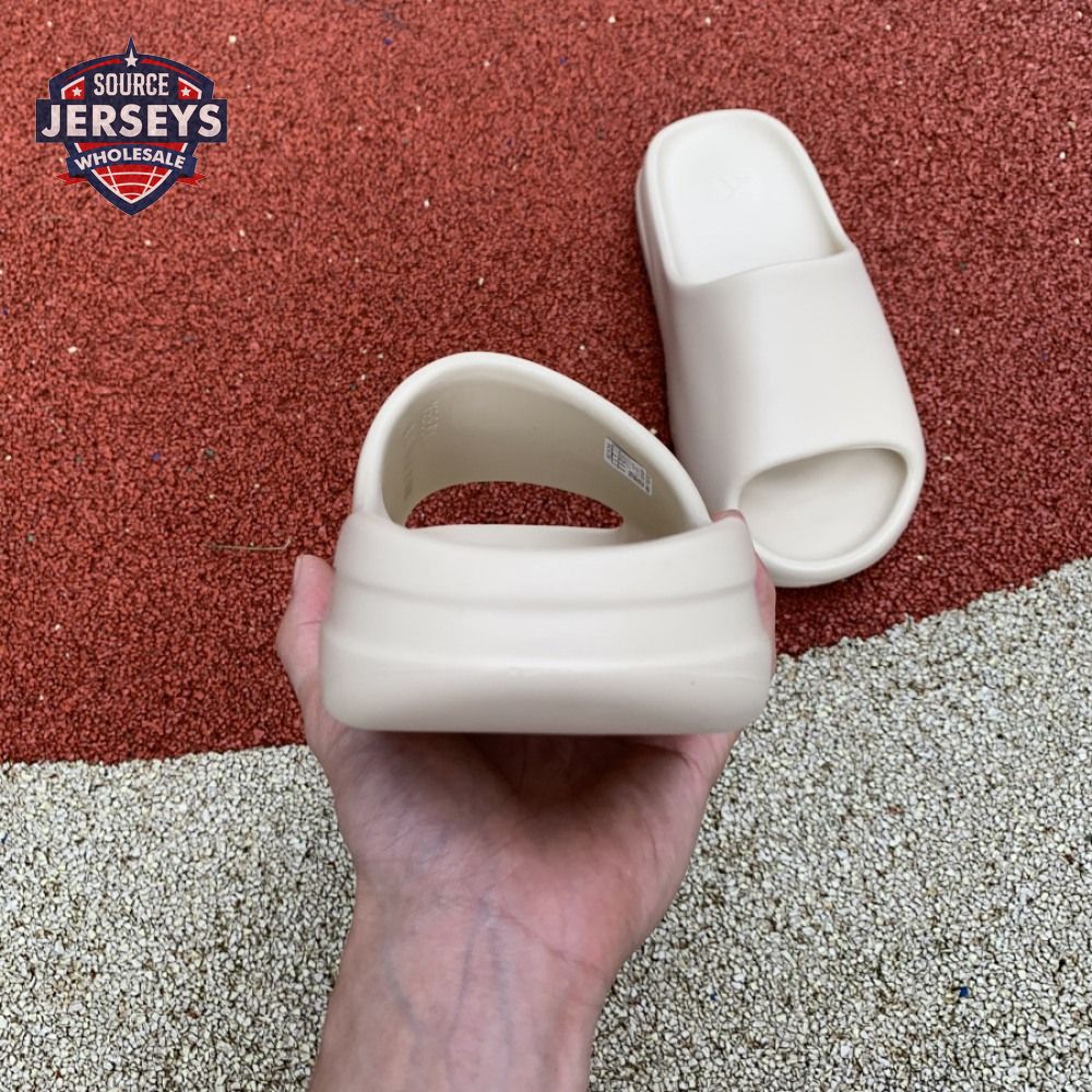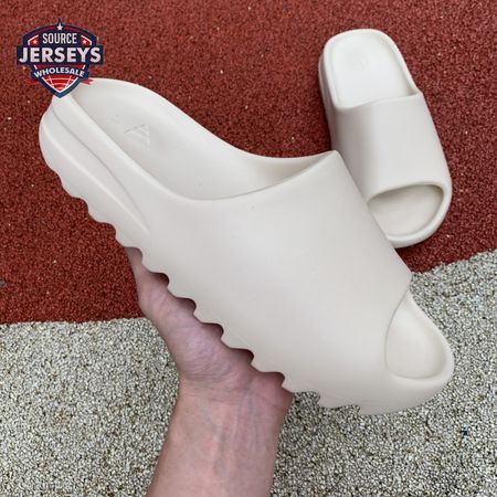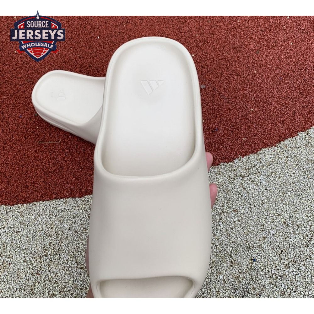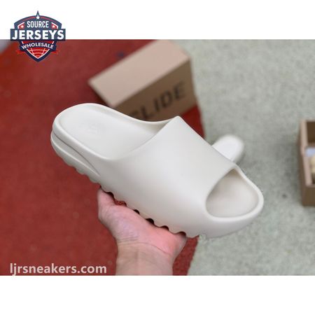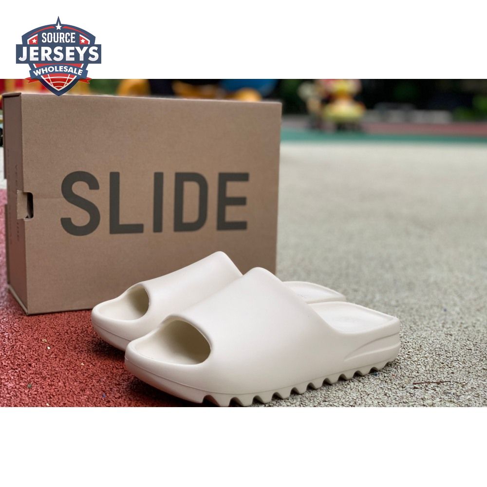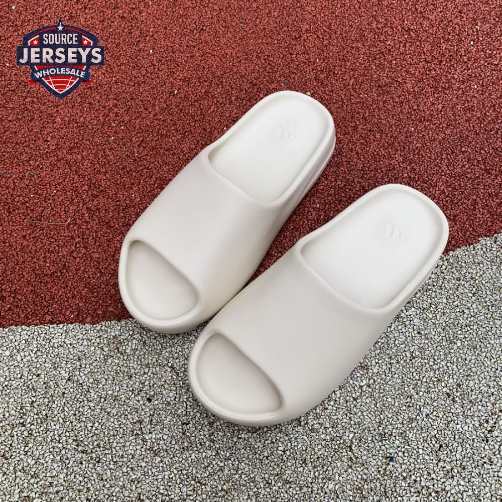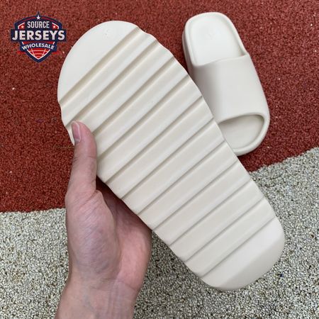 The Yeezy Slide 'Bone' applies a neutral hue to Kanye West"s take on an everyday sandal, constructed from EVA foam for lightweight comfort. The minimalist design is good for a sleek, contemporary look, with exterior branding limited to adidas" three-stripe logo debossed at the heel of the footbed. The slip-on build rides atop a high-traction outsole, fitted with strategically placed grooves for sure footing.