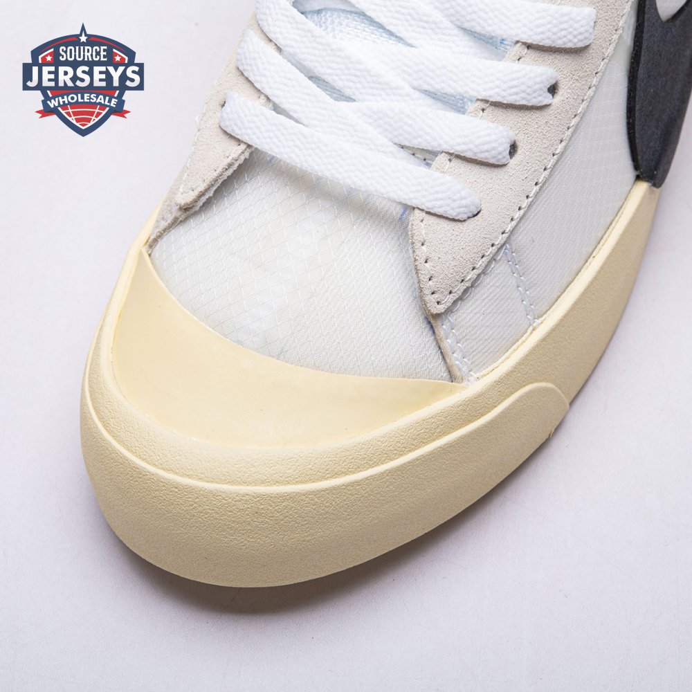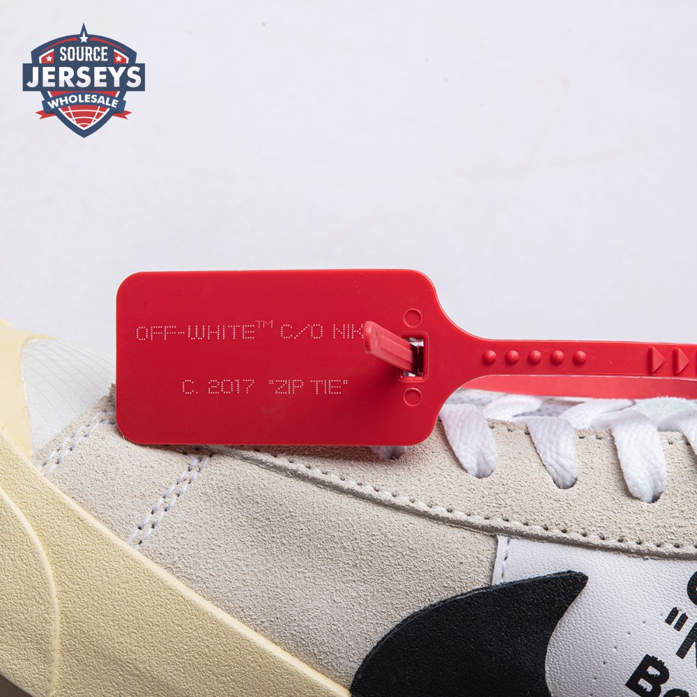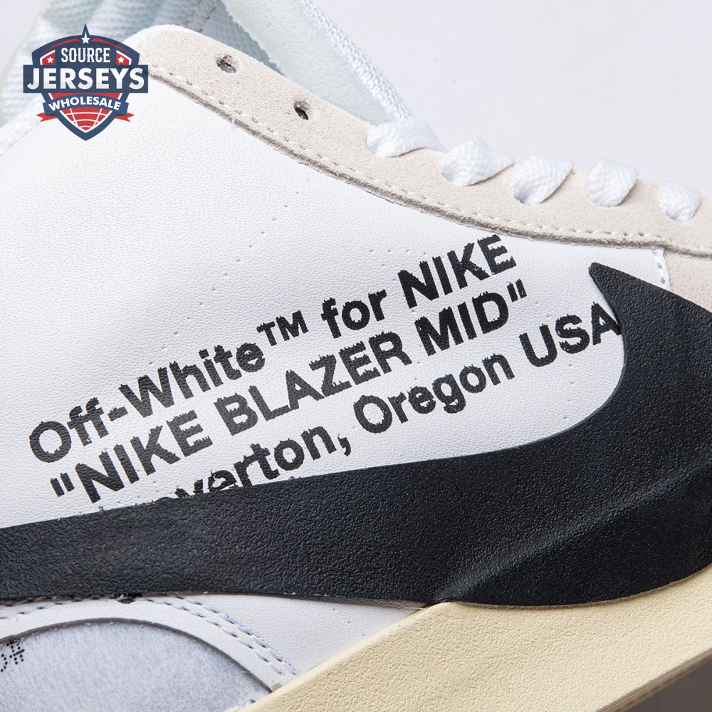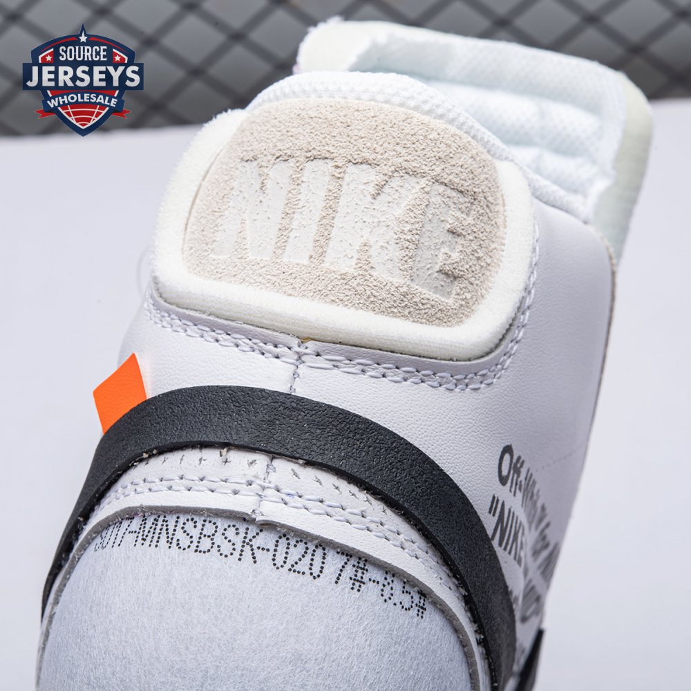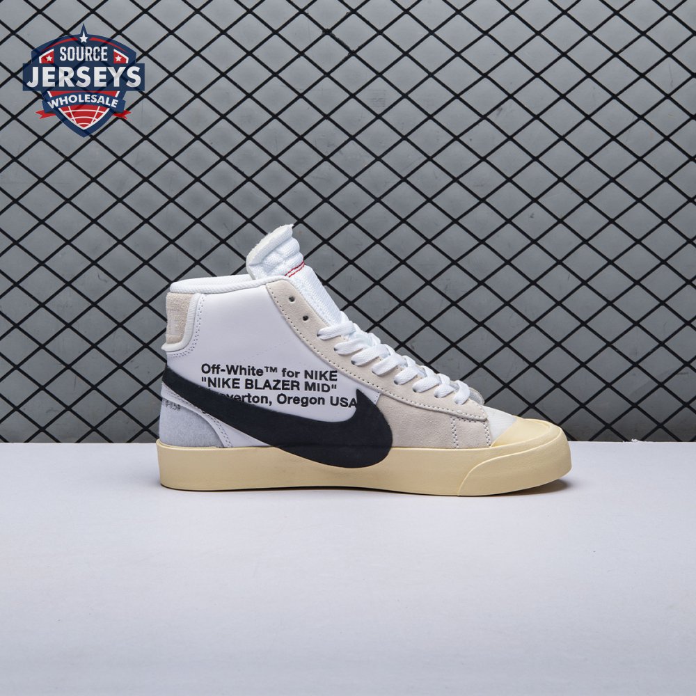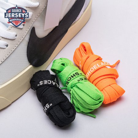 Virgil Abloh's Nike Off-White Blazer Mid features a white leather upper with an oversized black Nike Swoosh that descends into the midsole. The four lace options ?C white, black, neon orange, and neon green ?C come with Abloh's signature self-referential "SHOELACES" branding. Released in September 2017, this sneaker is a member of the initial five-pair REVEALING group of the Off-White x Nike 'The Ten' Collection that included reconstructed designs for the Air Jordan 1, Air Max 90, Nike Air Presto, and Nike Air VaporMax.