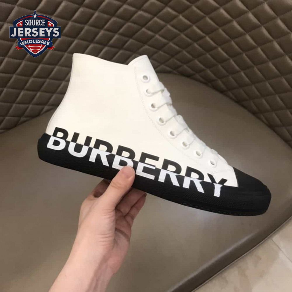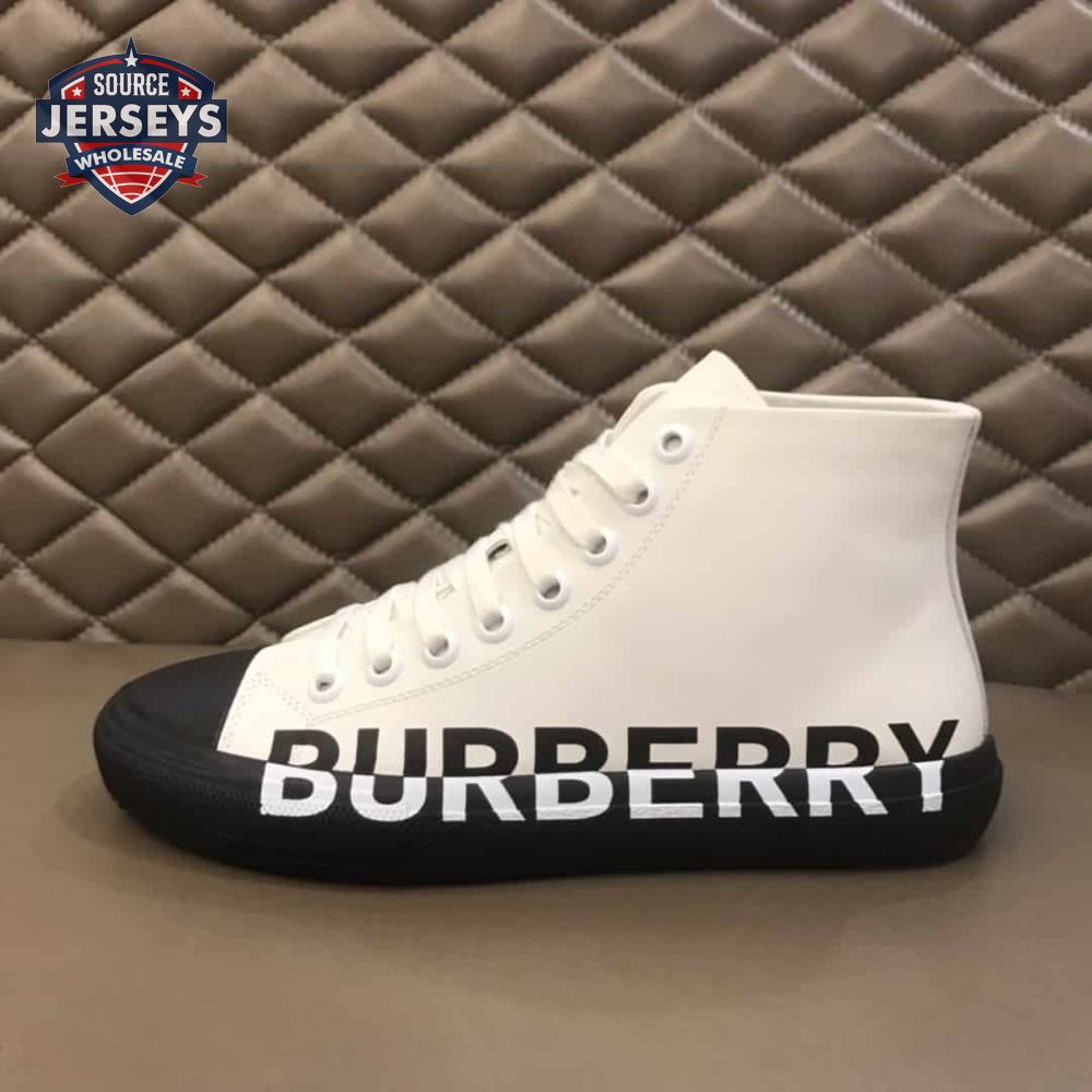 BURBERRY LOGO PRINT GABARDINE HIGH-TOP SNEAKERS - BBR32