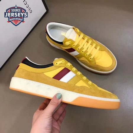 GUCCI MEN'S YELLOW LEATHER AND NYLON SNEAKERS - GC63