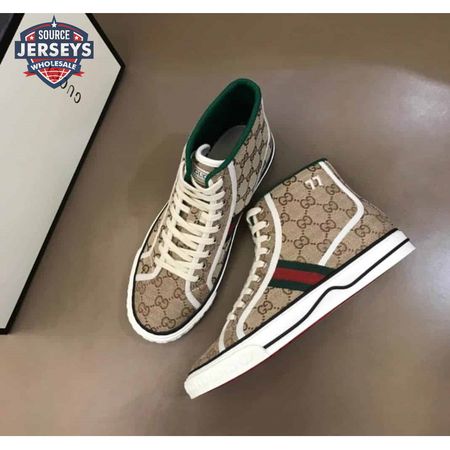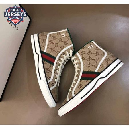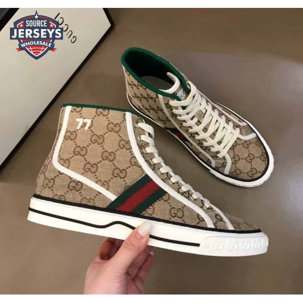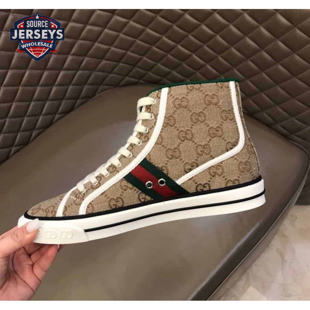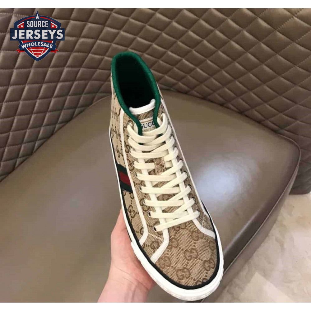 GUCCI TENNIS 1977 HIGH-TOP SNEAKERS IN BEIGE AND EBONY GG CANVAS - GC100