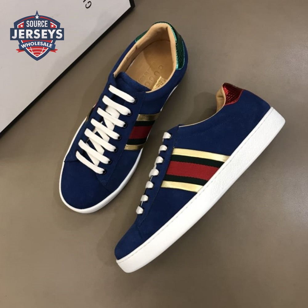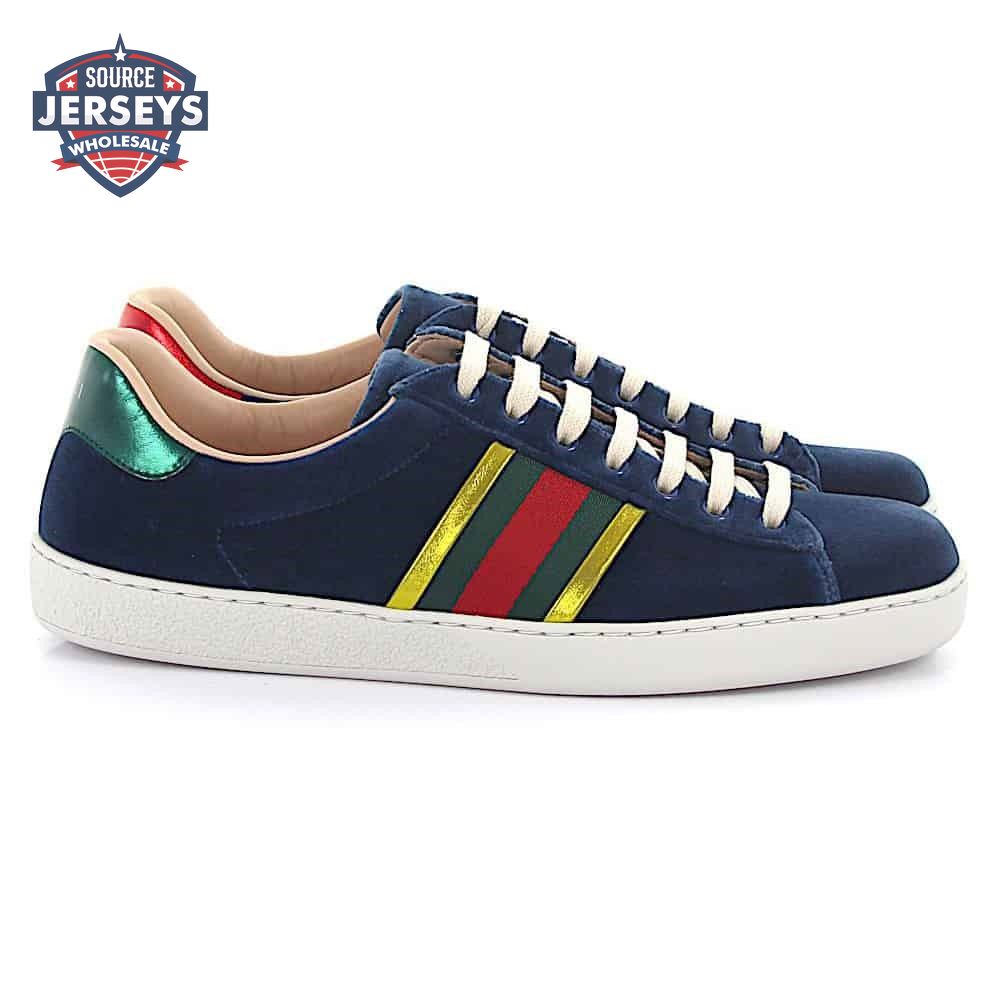 GUCCI ACE SNEAKER VELVET BLUE METALLIC STRIPE - GC40