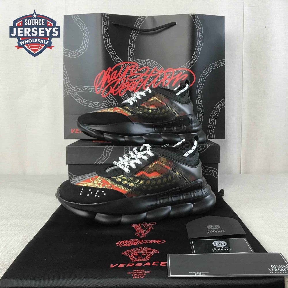 VERSACE BLACK RED AND MULTICOLOURED CHAIN REACTION SNEAKERS - VS18