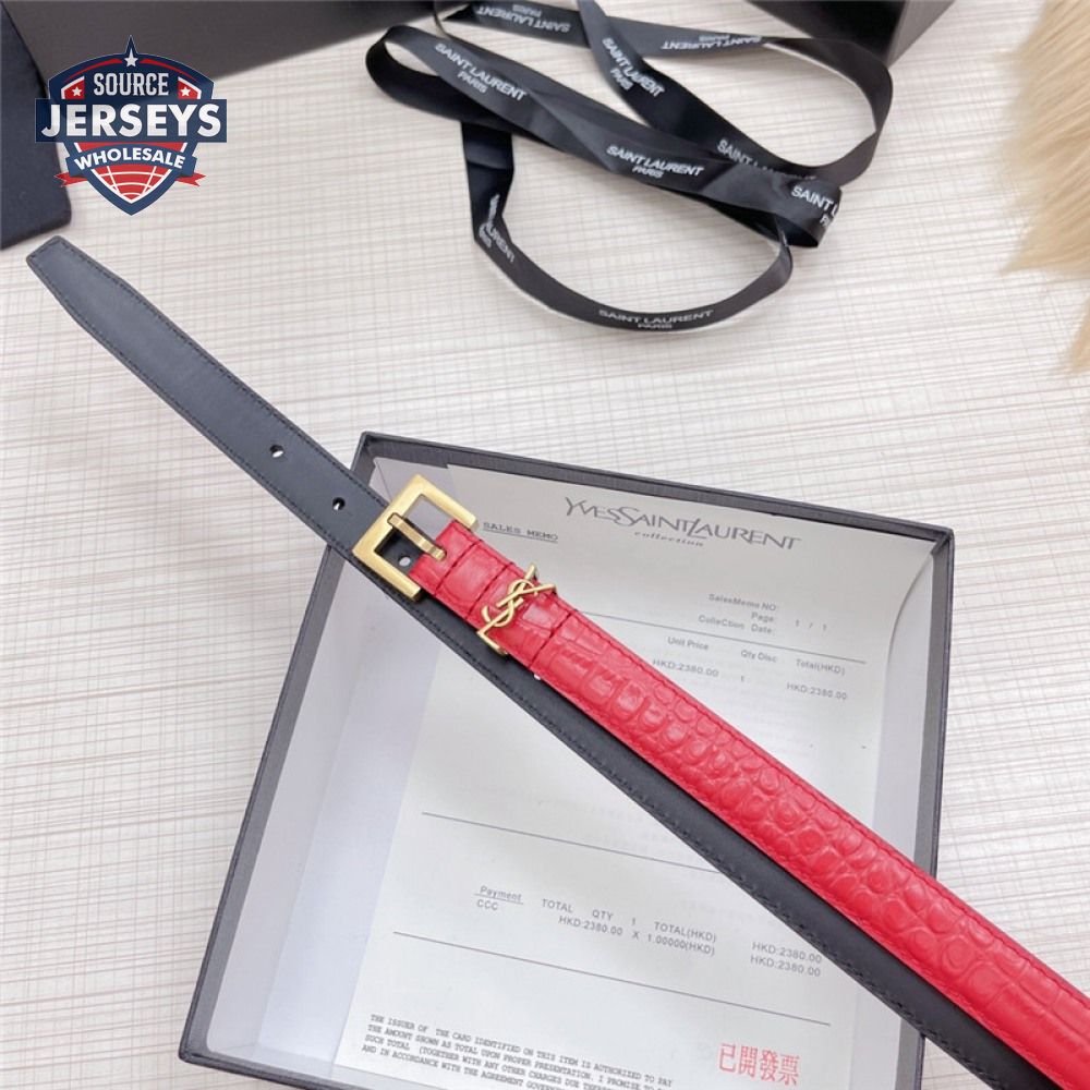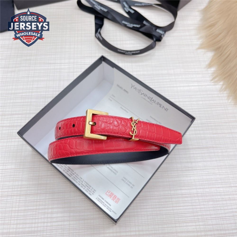 ysl crocodile grain top layer leather belt