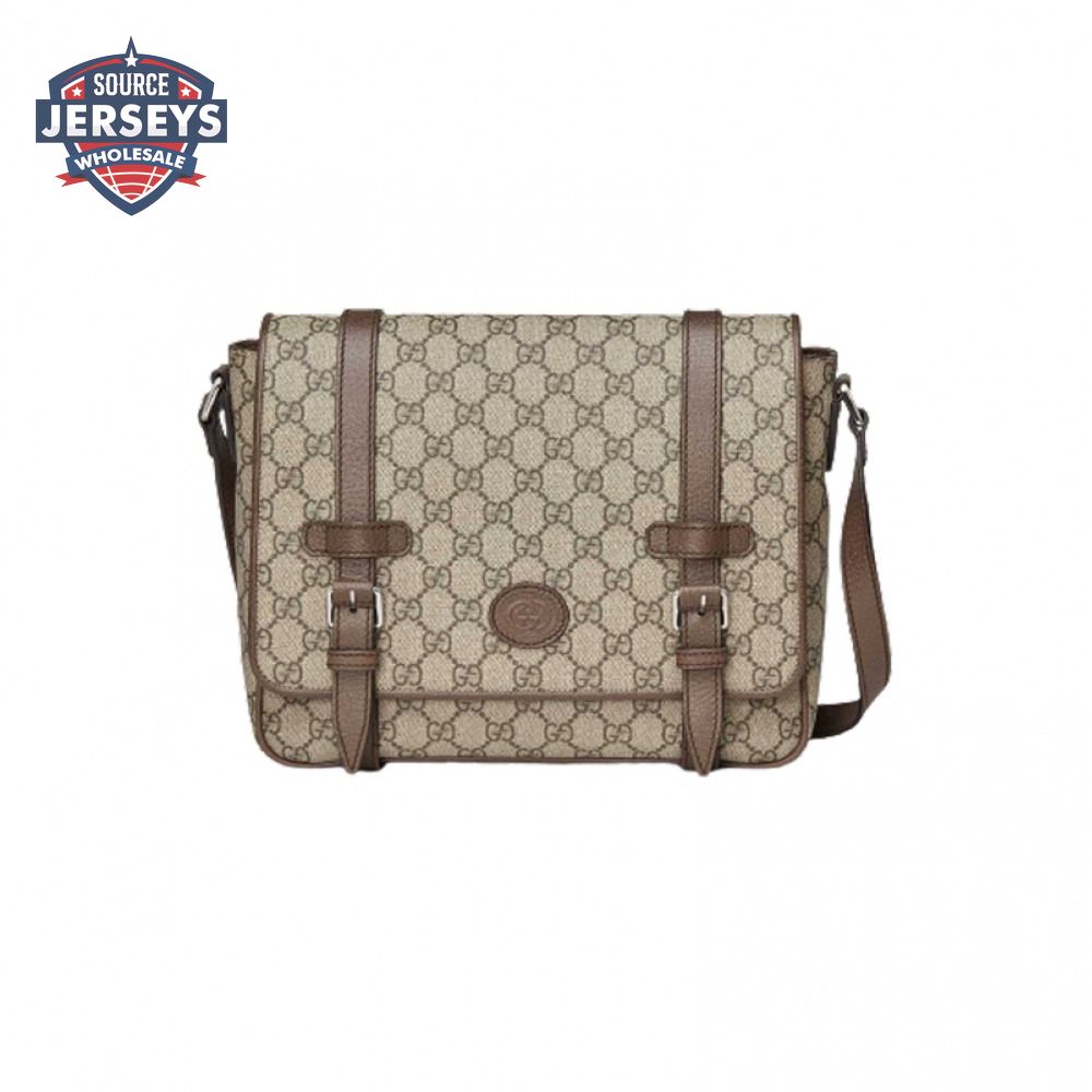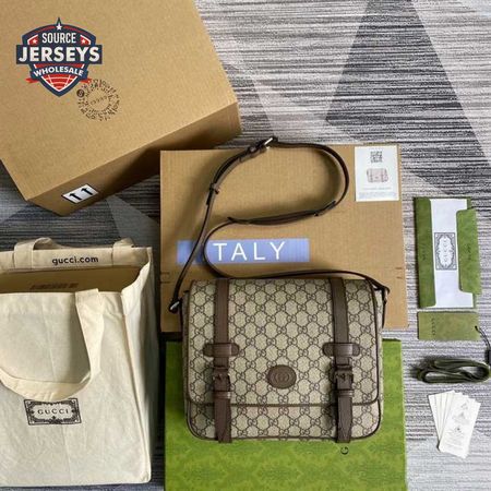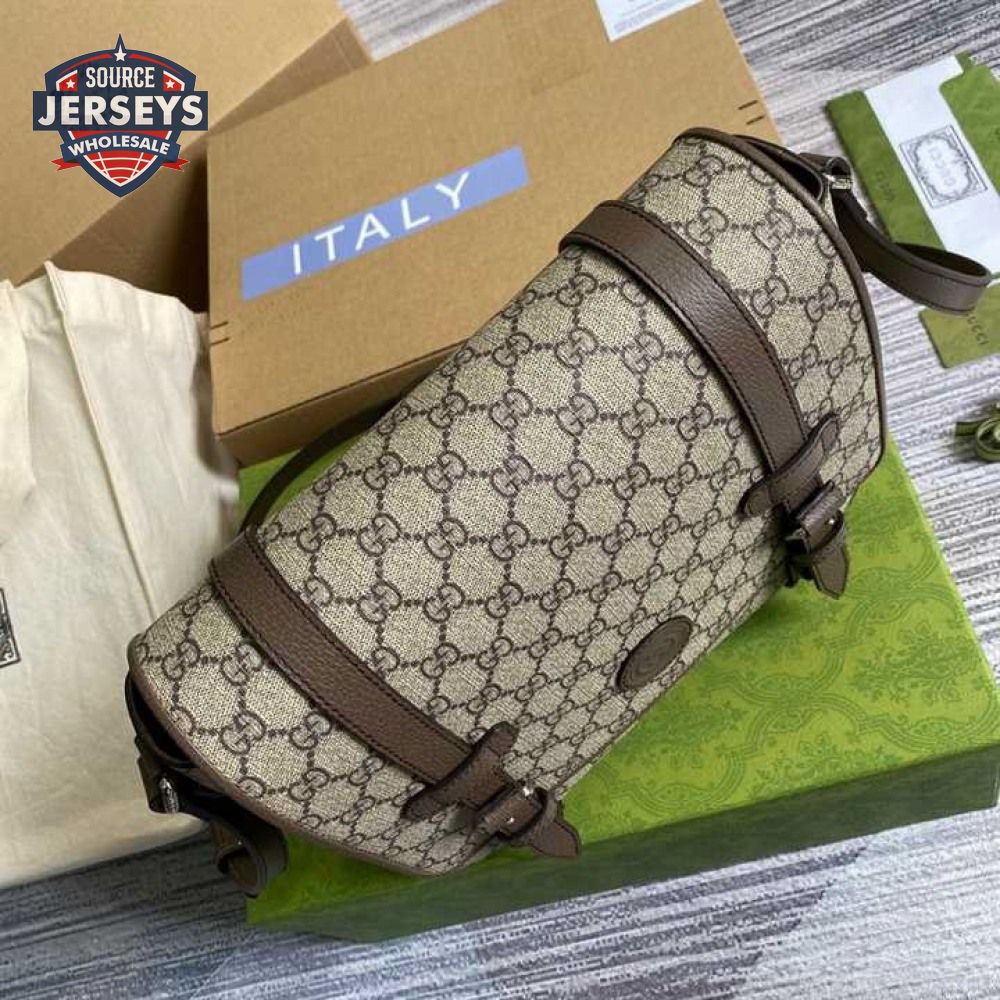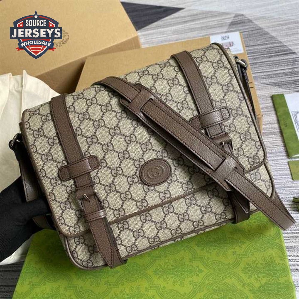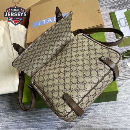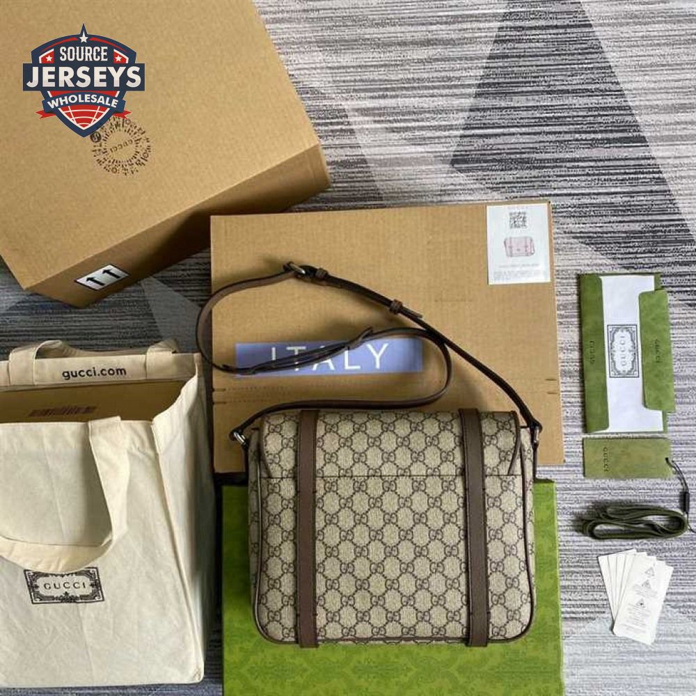 Gucci Messenger Bag Beige/Ebony Gg Supreme Canvas Brown Leather Trim GMB008