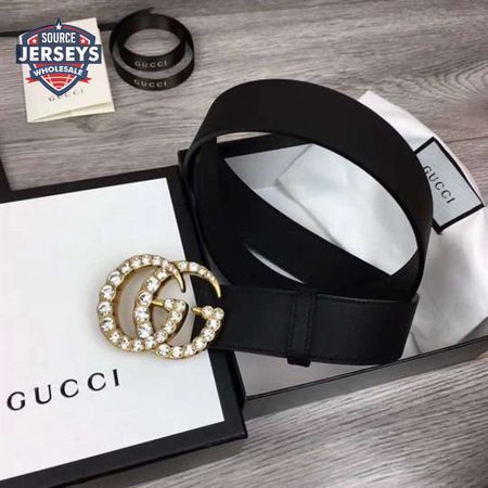 GUCCI BLACK FAUX PEARL-EMBELLISHED LEATHER BELT - B44