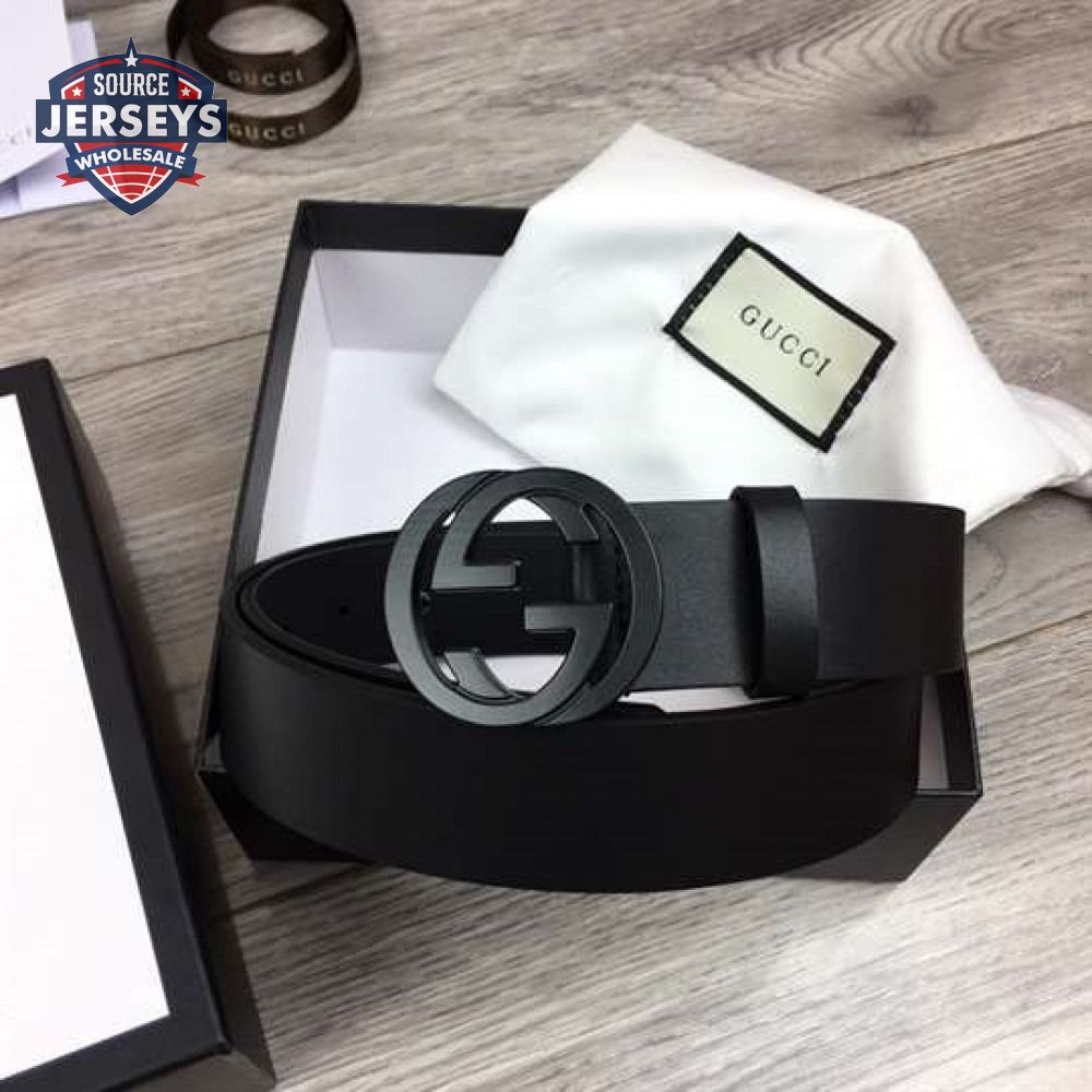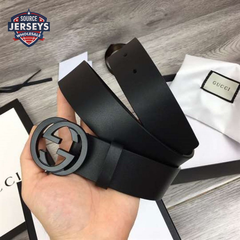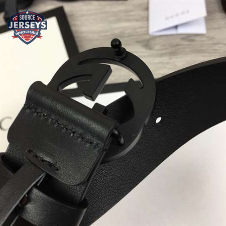 GUCCI LEATHER BELT WITH INTERLOCKING G BUCKLE - B31