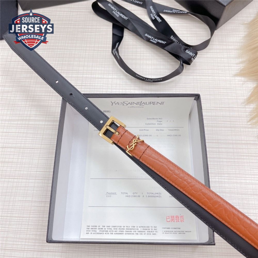 ysl crocodile grain top layer leather belt