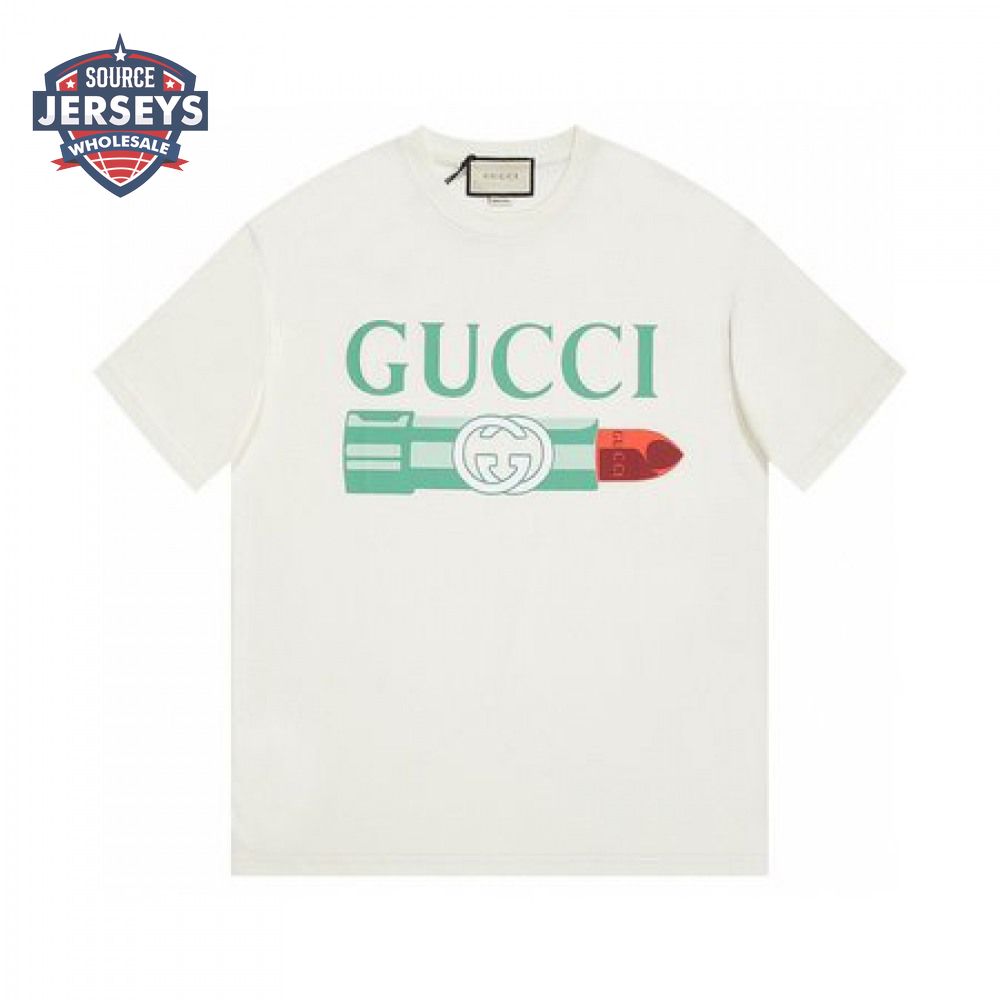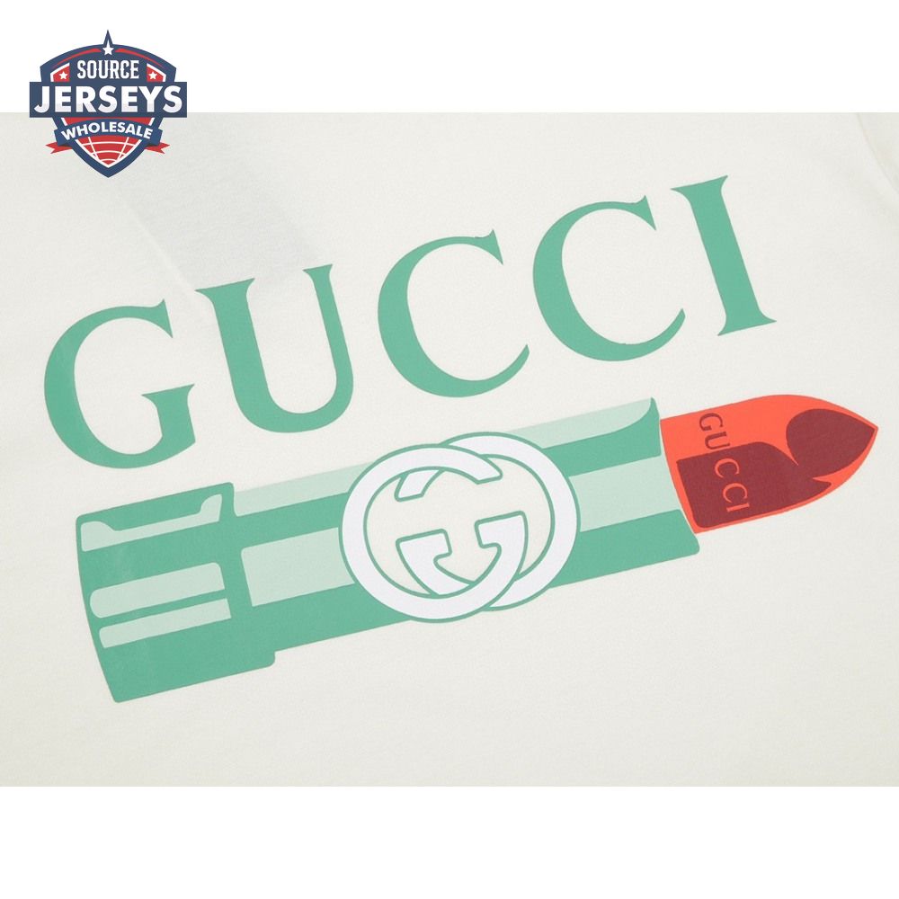 GUCCI LIPSTICK PRINT PRINT COTTON T-SHIRT WHITE