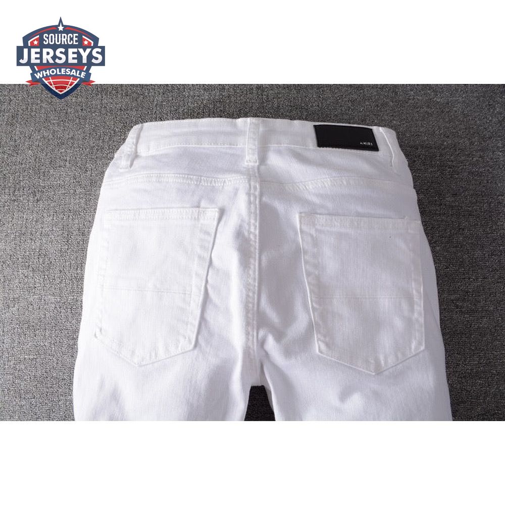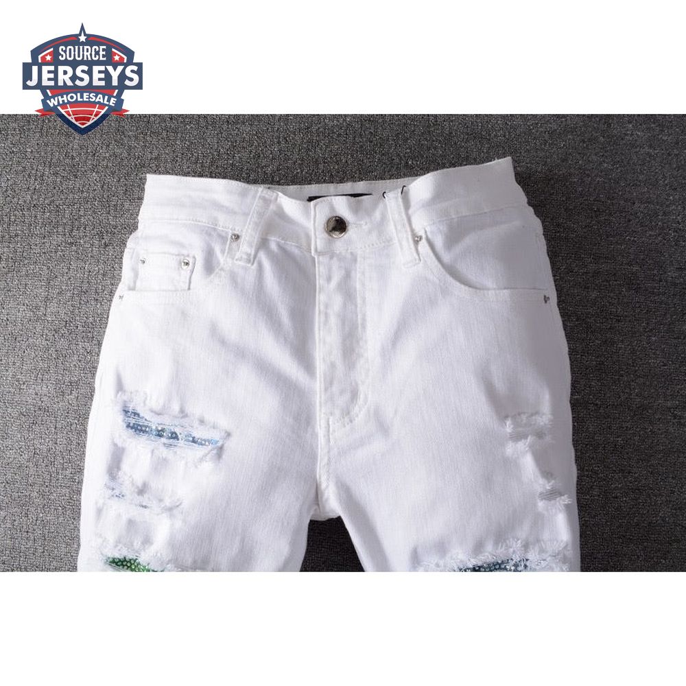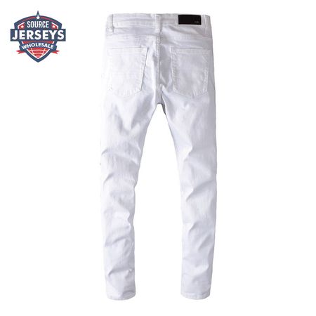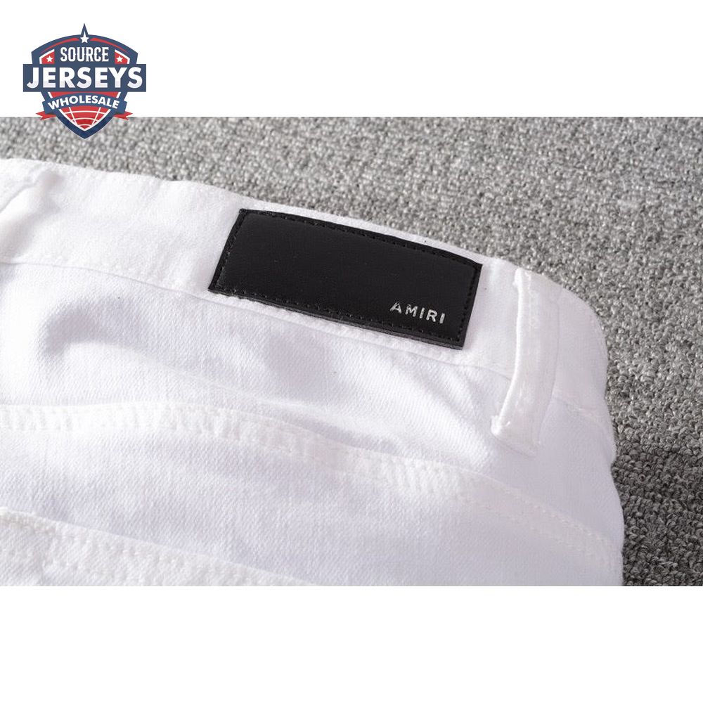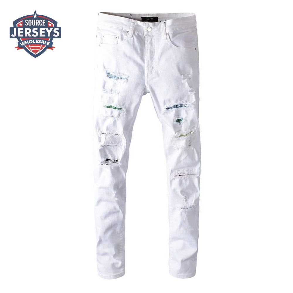 Amiri Rhinestone Rip Jeans White