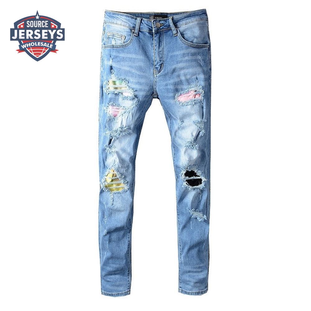 Amiri Rip Jeans Blue / Pink / Yellow