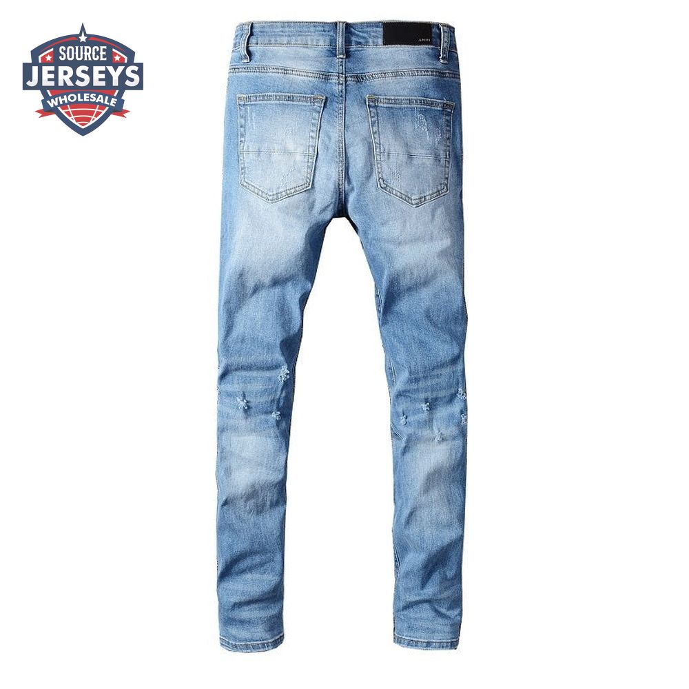 Amiri Chain Design Rip Jeans Light Blue