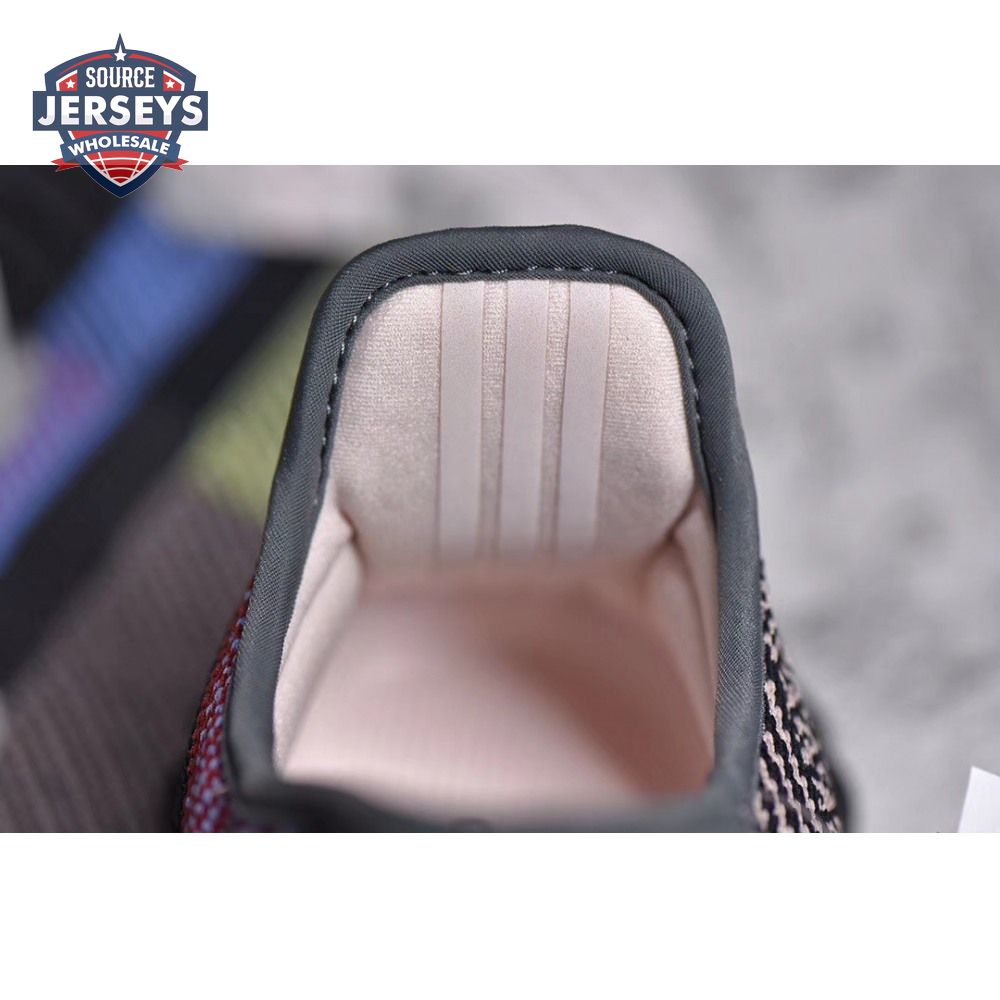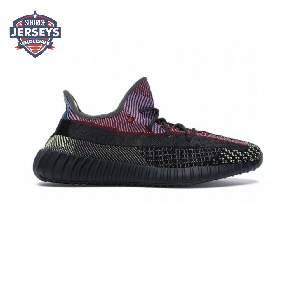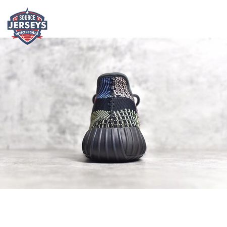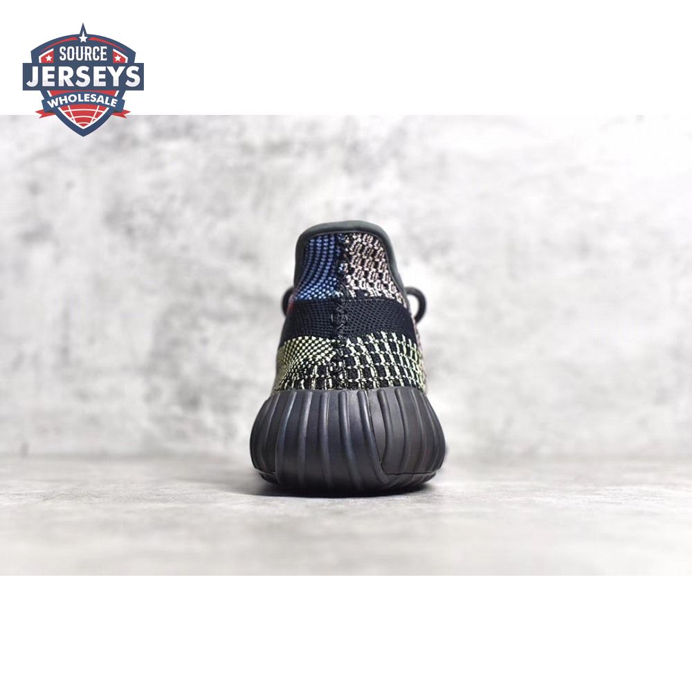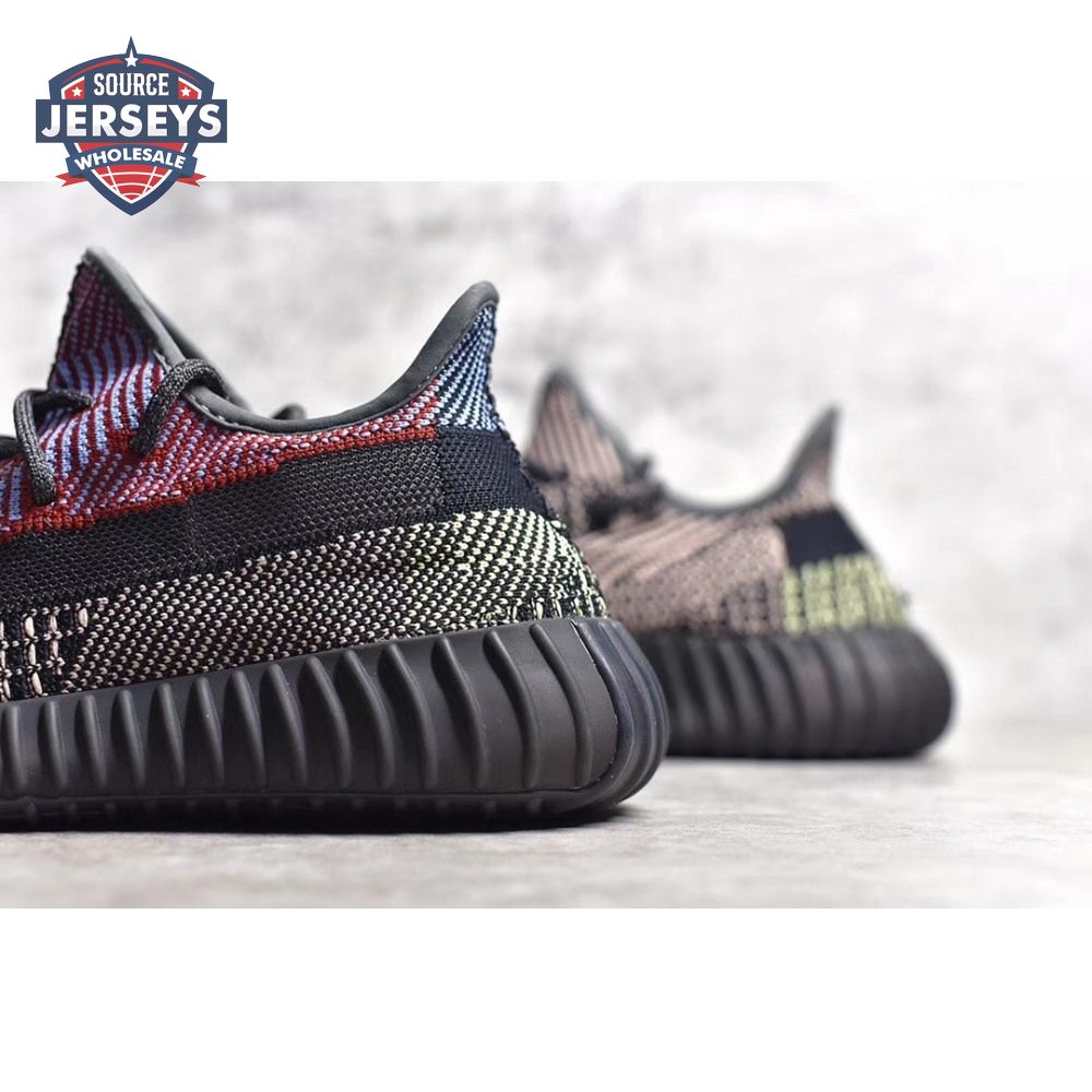 Released in December 2019, the adidas Yeezy Boost 350 V2 'Yecheil' sneaker departs from Kanye West's previous renditions connected by his signature earth tones. Multicolored yarns give a graphical look to the Primeknit upper. Classic features include rope laces, Three-Stripes at the inner heel and a translucent monofilament stripe through the lateral. The same 350 midsole/outsole is blacked out and still houses full-length Boost cushioning.