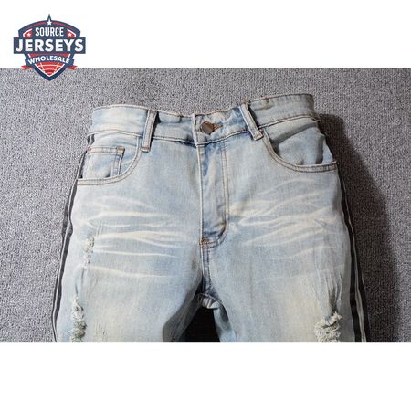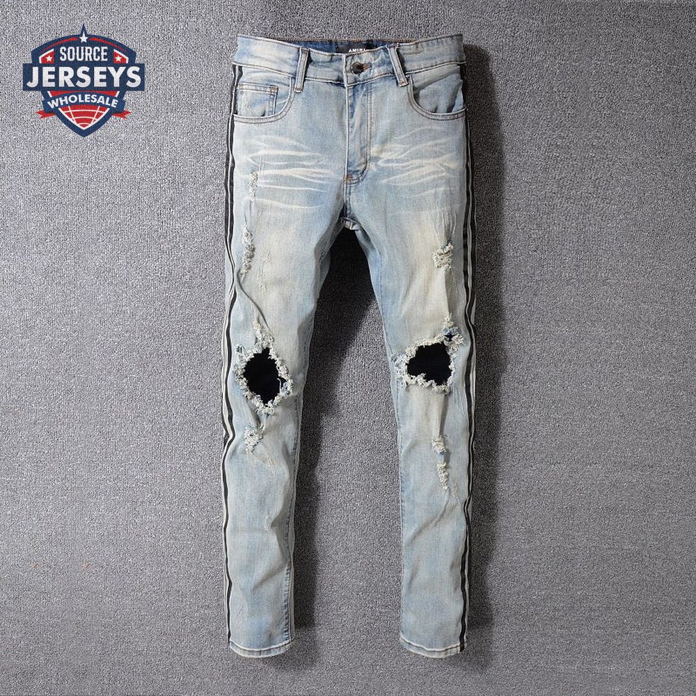 Amiri Striped Rip Jeans Light Blue / Black