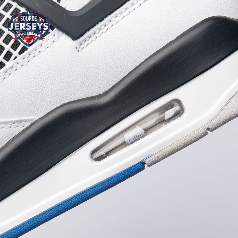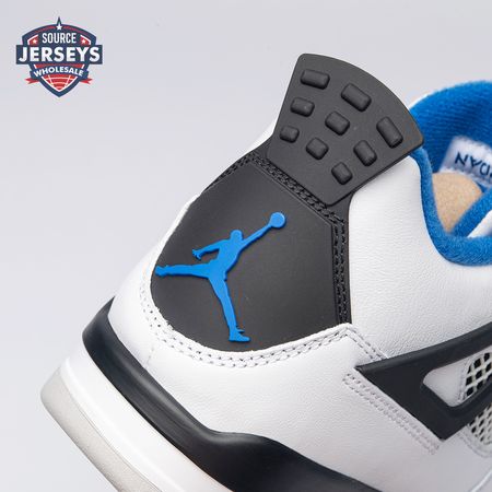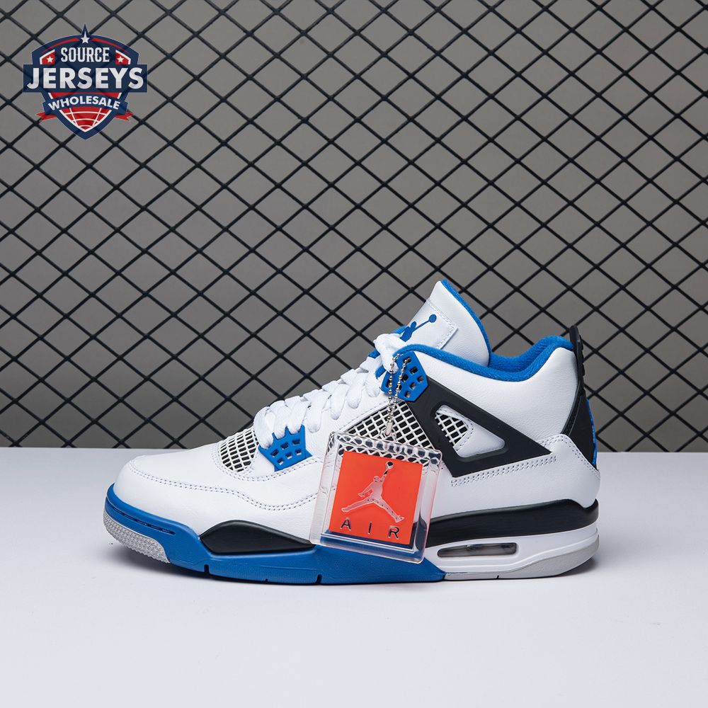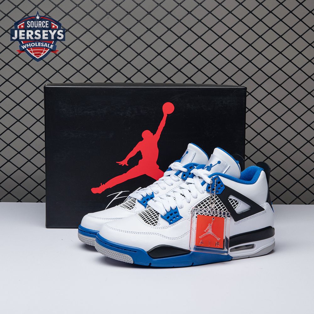 The Air Jordan 4 Retro "Motorsports" is inspired by a 2006 friends and family colorway created for the 4th anniversary of MJ"s Motorsport"s Racing team. Released to the general public in March of 2017, the sneaker incorporates the teams" white, black, and varsity royal blue colors, but removes the Mars Blackmon heel accent that graced the 2006 sneake. An Air Jordan 4 Retro 'Motorsports Alternate," released a few months later in a black colorway.