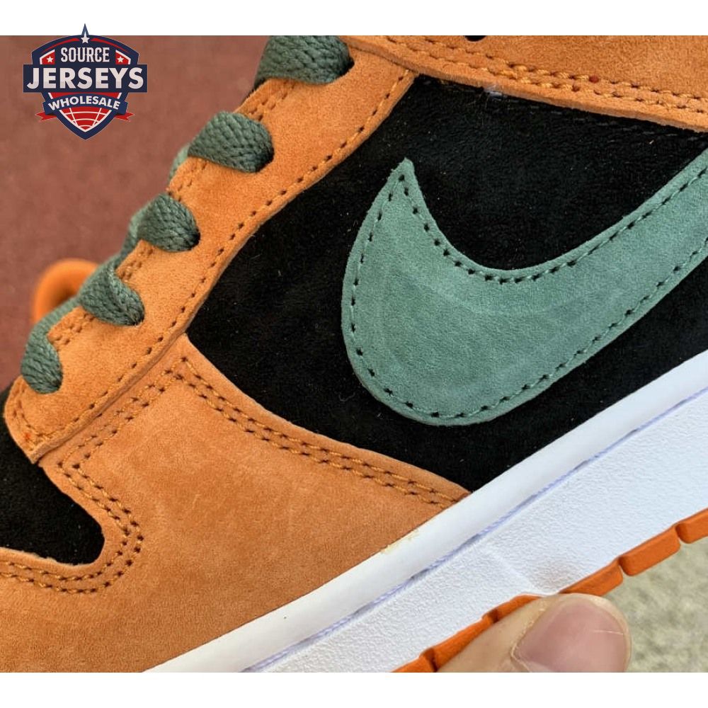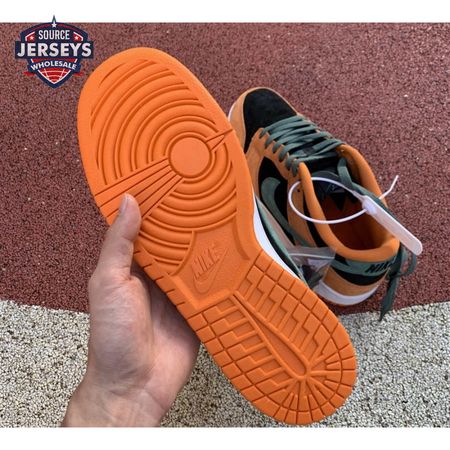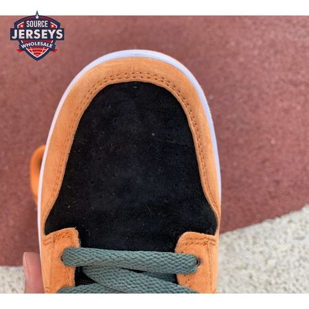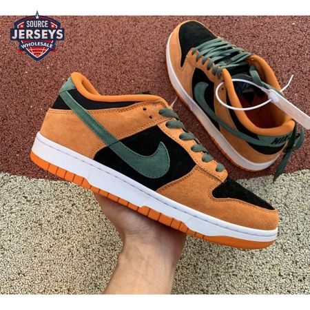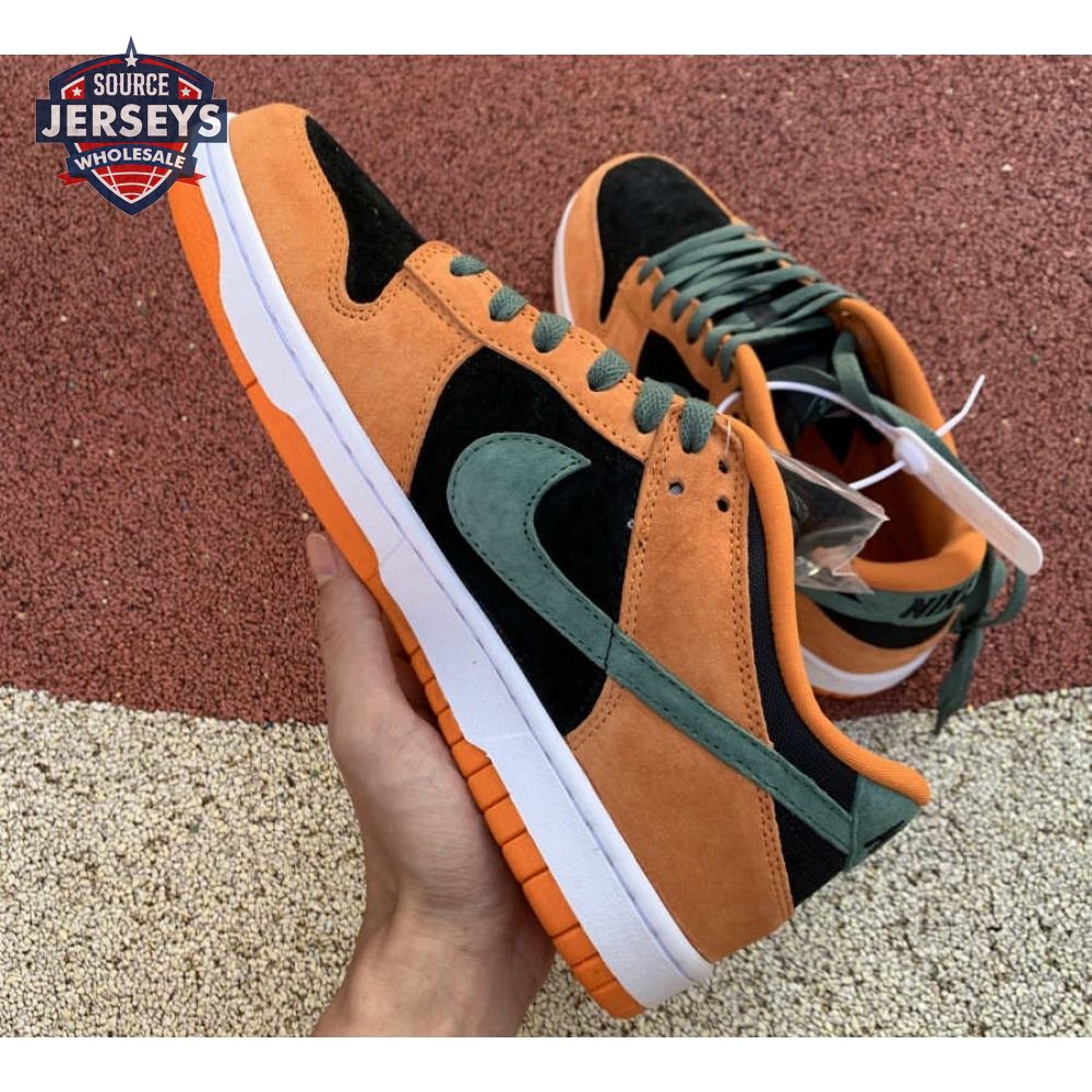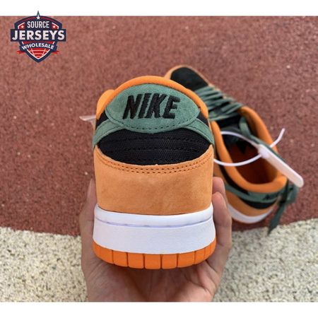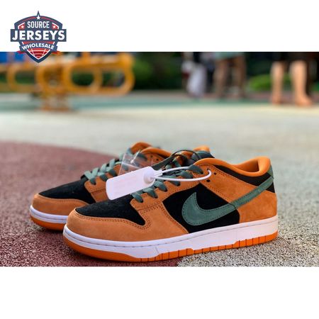 The 2020 reissue of the Nike Dunk Low SP Retro "Ceramic" brings back an original colorway from the CO.JP "Ugly Duckling Pack," released exclusively in Japan in 2001. Like the other pairs in the three-piece collection, the low-top highlights clashing hues on a premium suede upper. Here, the sneaker"s black base is contrasted by Ceramic orange overlays and Nori green hits on the Swoosh, laces and heel tab, embroidered with Nike branding. A second Nike wordmark adorns the woven tag atop the mesh tongue.