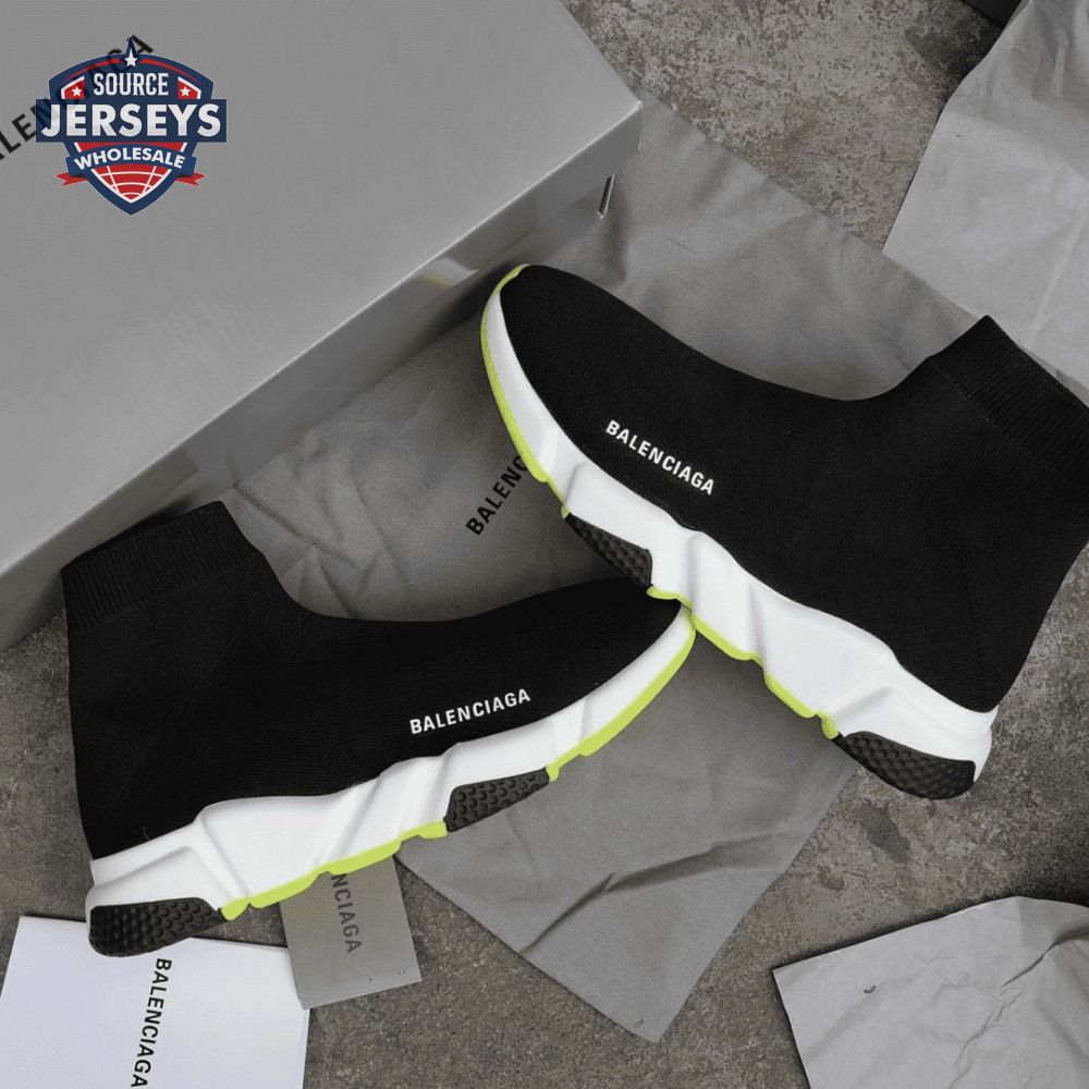 BALENCIAGA SPEED TRAINER BLACK WHITE NEON SS19 - BB12