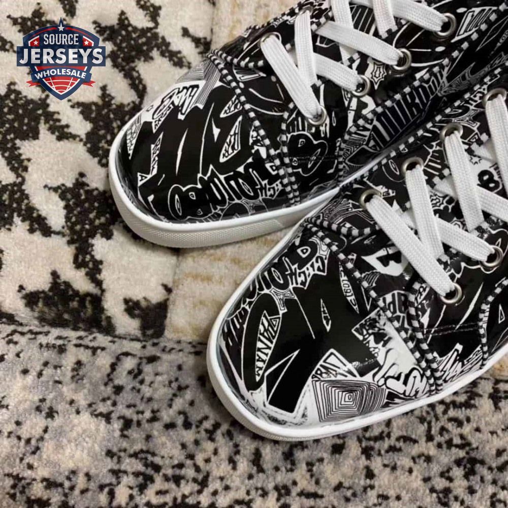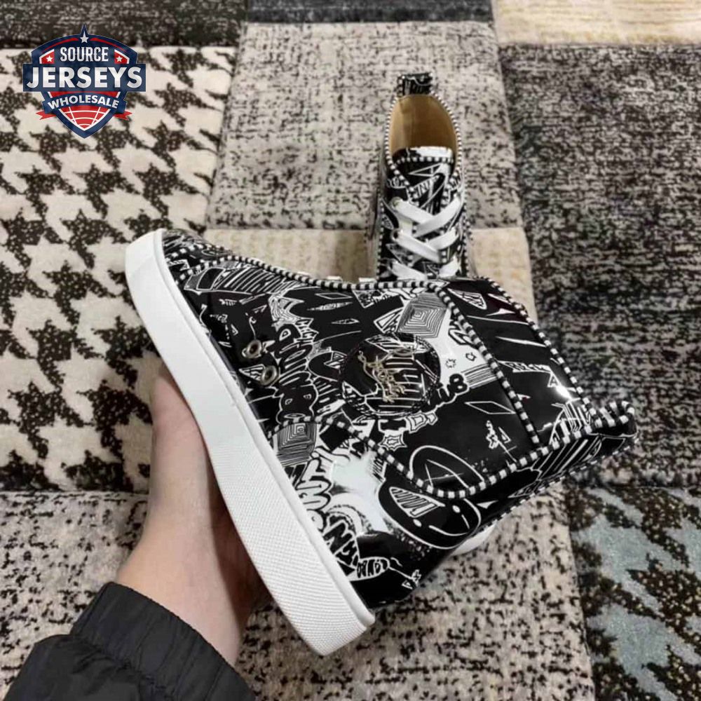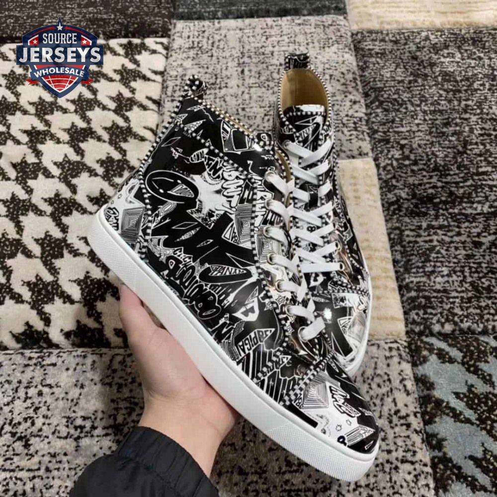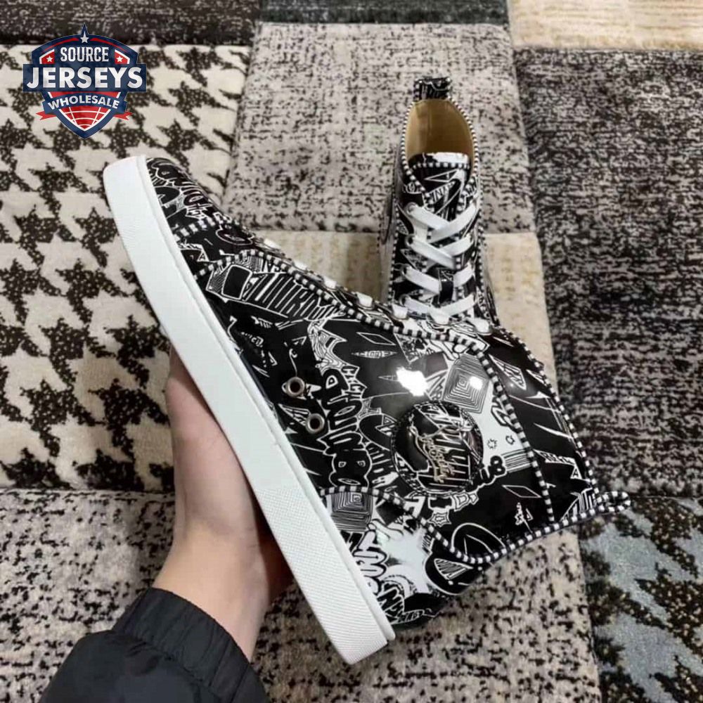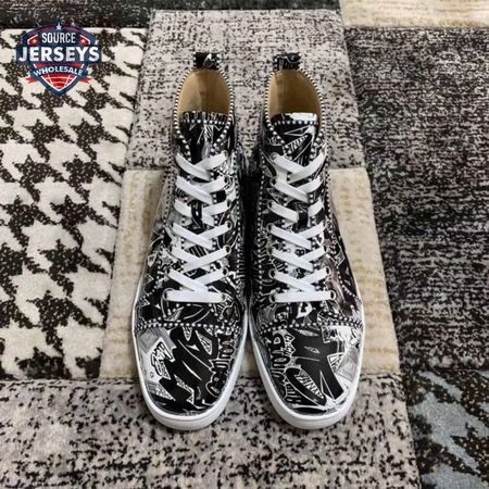 Christian Louboutin Black/White Leather Louis Orlato Spike Sneakers