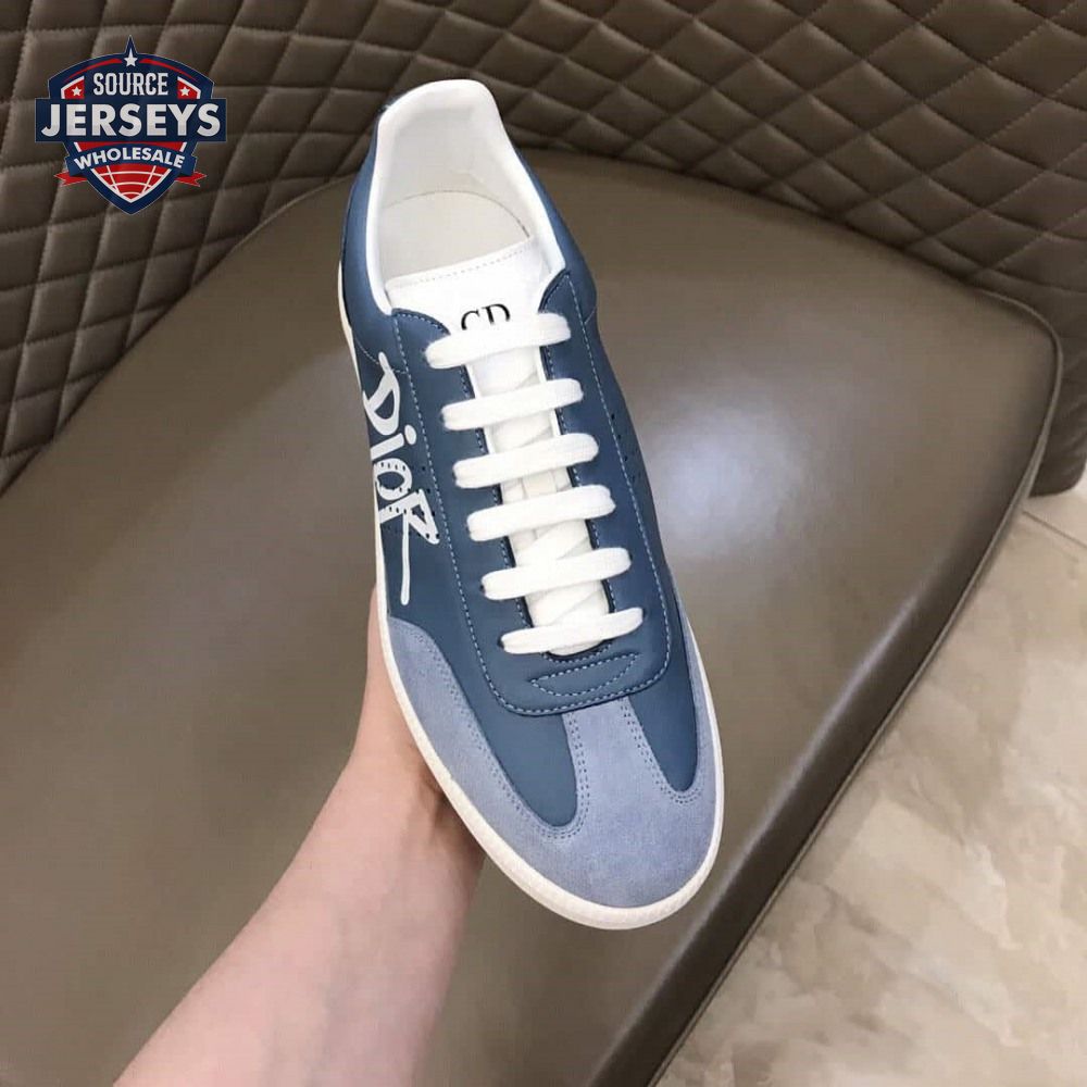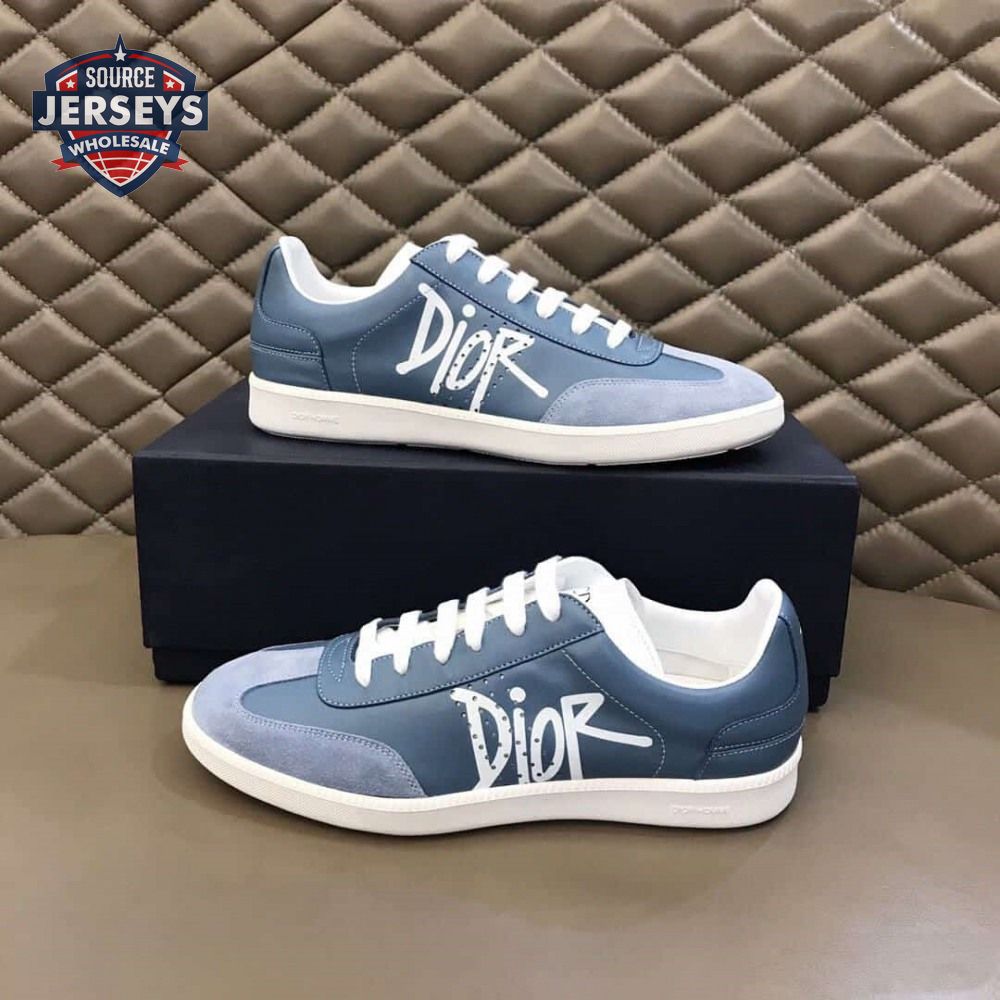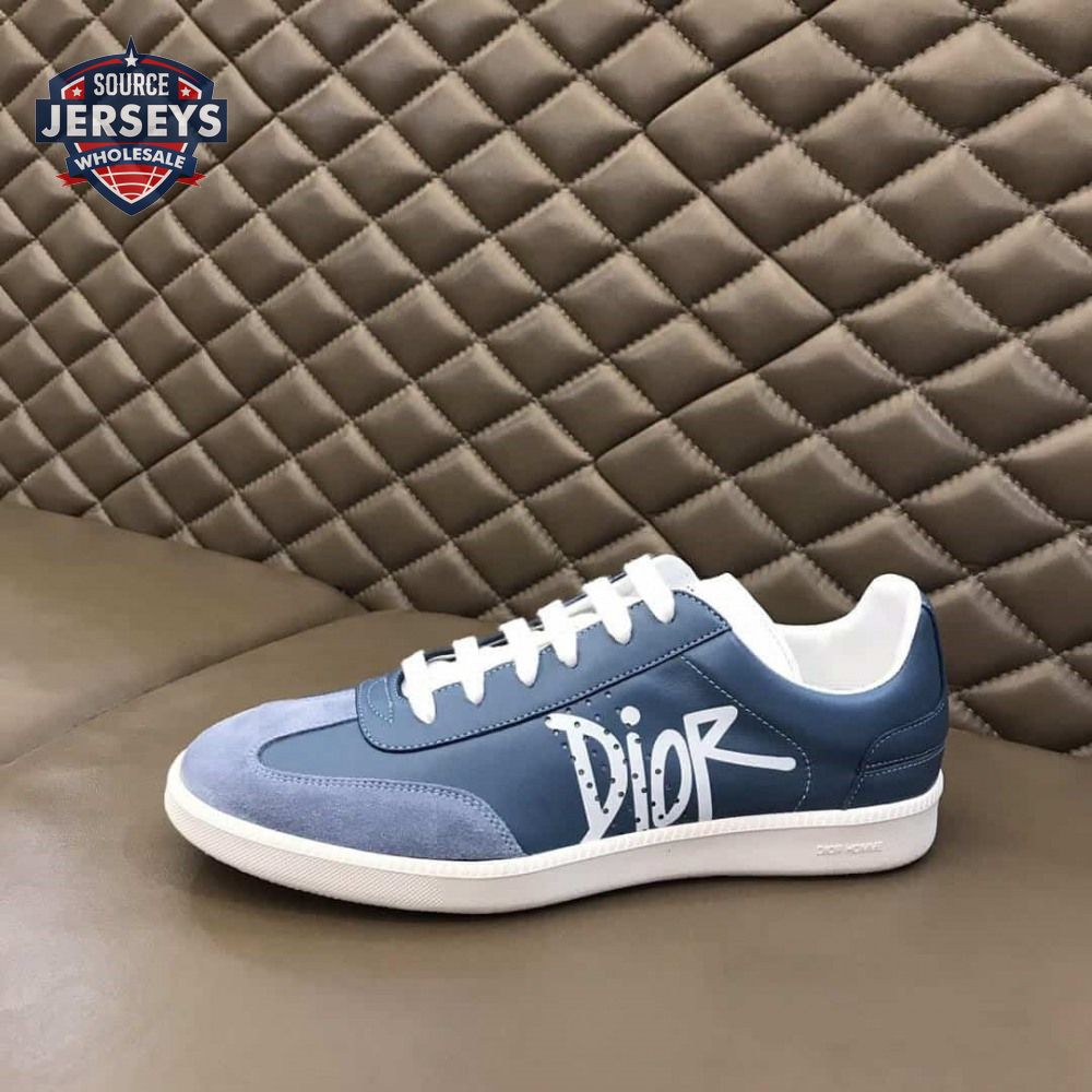 DIOR B01 SNEAKER BLUE SMOOTH CALFSKIN AND SUEDE WITH DIOR AND SHAWN SIGNATURE - CD57