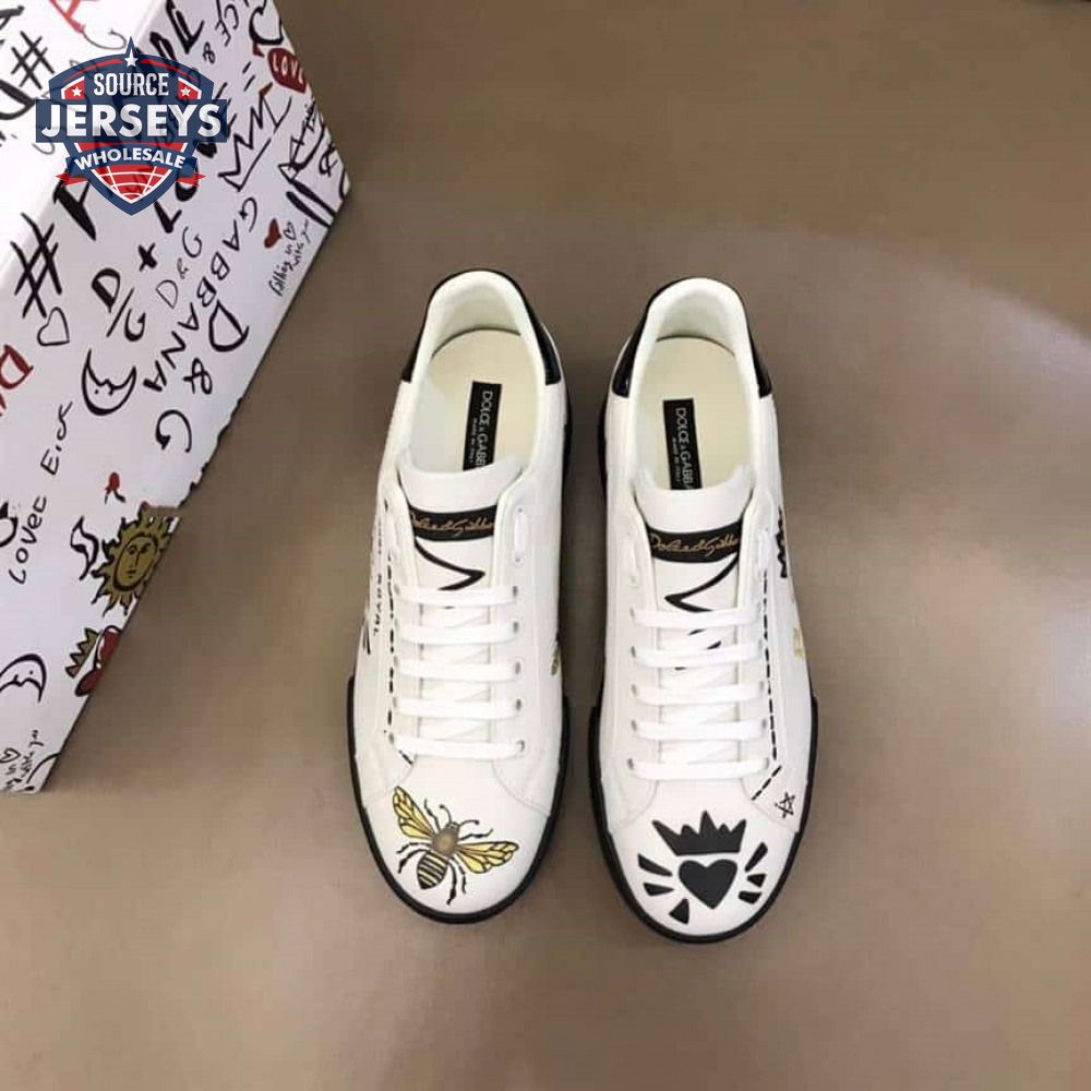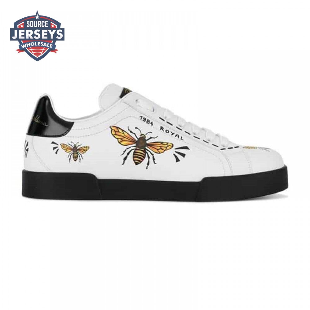 DOLCE AND GABBANA PORTOFINO WASP PRINT SNEAKERS IN WHITE - DG104